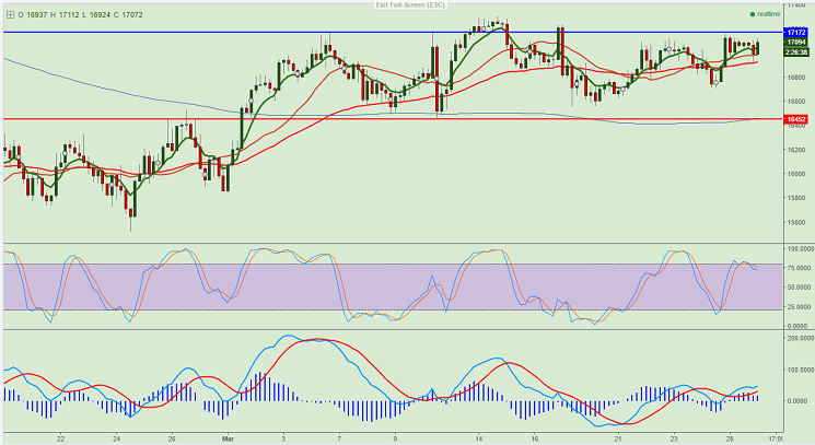 - Nikkei is struggling to beak above 17300 and any further bullishness can be seen only above 17300.On the higher side any break above 17300 will take the index to next level till 17520/17750/17900.