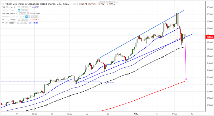 FxWirePro: Nikkei225 trades lower on weak global markets, good to sell on rallies
