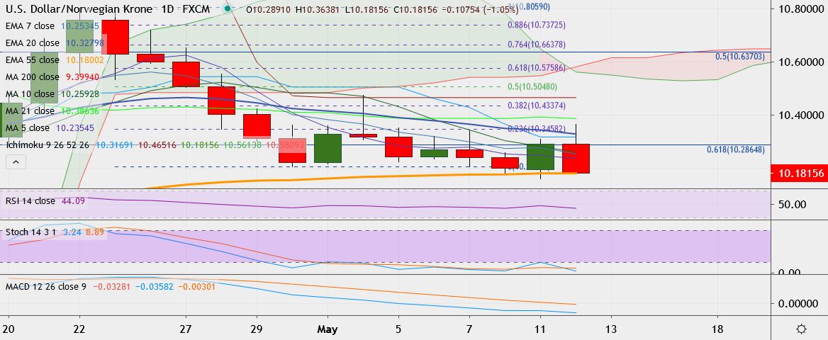 - On the downside, support is around 10.1799 (55-DMA), break below could take it till 10.1298.