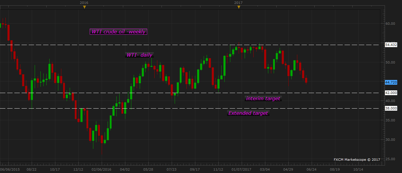 The oil price has now declined for a fourth consecutive week and reached the lowest point since April. It not only erased gains made from the speculation of a deal made in May among OPEC and N-OPEC countries, it is also challenging the gains made after first OPEC deal back in November 2016.