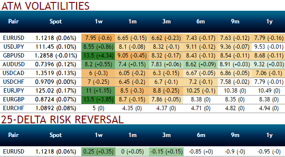 The option strategy: Contemplating the above implied volatility of the pair, the costless collar option combination strategy is advocated at this juncture, and is established by buying a protective put while writing an out of the money covered call with a strike price at which the premium received is equal to the premium of the protective put purchased.