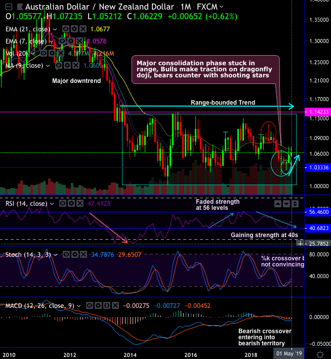 AUDNZD has been oscillating between 1.1425 and 1.0025 levels from last 5 years. The upswings, from the last couple of days, are targeting 1.0725 levels with potential for even higher.