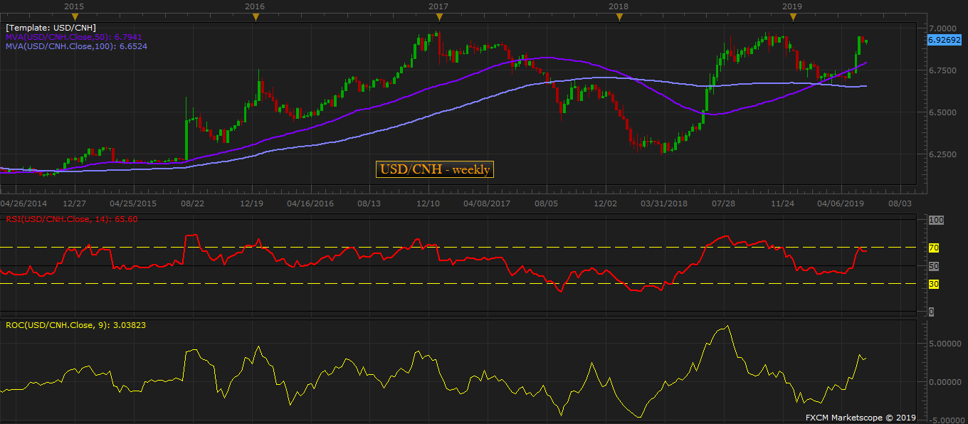 At the beginning of the week, as the USD/CNH exchange rate neared 7 area, Guo Shuqing, head of China’s banking and insurance regulator warned that yuan shorts would inevitably suffer huge loss and added that the impact of U.S. tariffs on Chinese economy would be limited.
