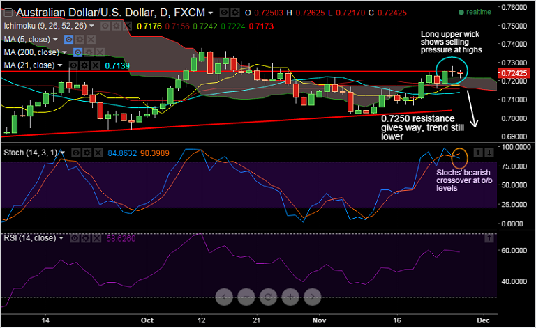 Recommendation: Good to sell rallies around 0.7250, SL: 0.73, TP: 0.7185