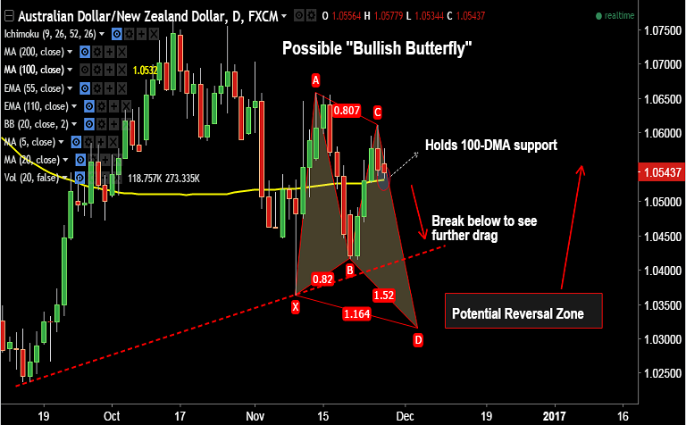 - We see a possible "Bullish Butterfly" pattern on AUD/NZD daily charts.