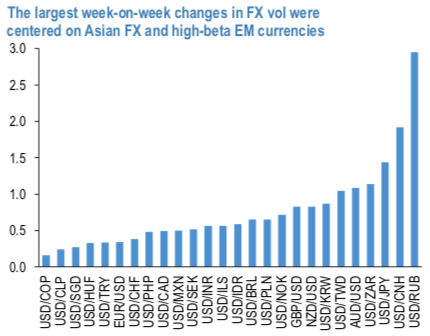 In contrast, tariff threats are a blunt instrument – a blanket vol generator that affects large swathes of the EM world, albeit with a tilt towards Asia that is the epicenter of stress.