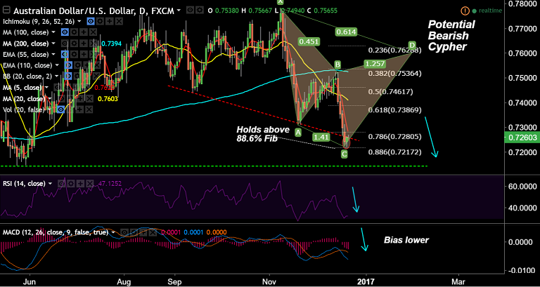 - We have evidenced a "Potential Bearish Cypher" on AUD/USD daily charts.
