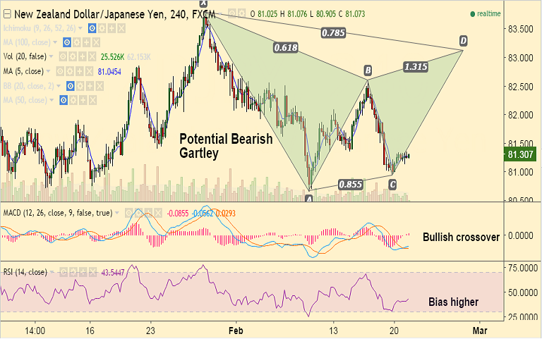 We have identified a potential 'Bearish Gartley' pattern on NZD/JPY 4-hourly charts.