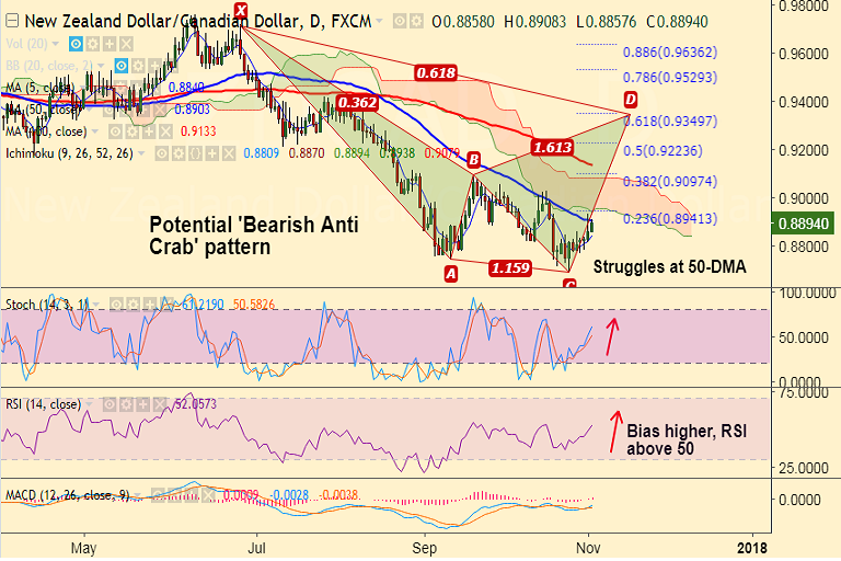 - We see a potential bearish 'Anti Crab' pattern forming on NZD/CAD daily charts which raises scope for upside.