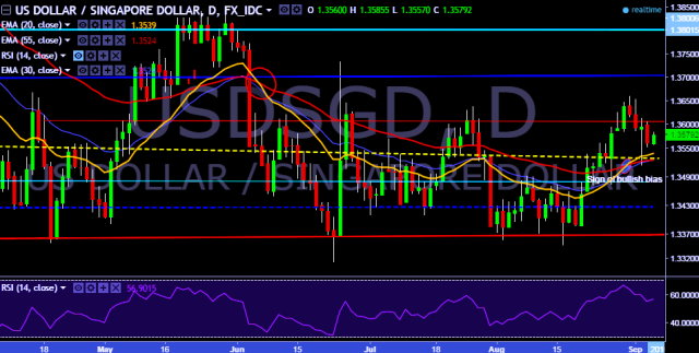 We prefer to go long on USD/SGD around 1.3568 with stop loss at 1.3513 and target of 1.3799.