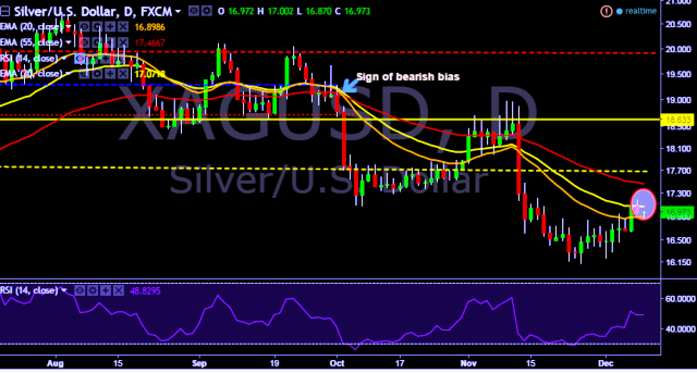 We prefer to go long on XAG/USD only above $17.02 with stop loss at $16.87 and target of $17.48.
