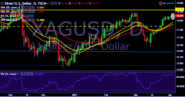 We prefer to go long on XAG/USD only above $18.29 with stop loss at $18.17 and target of $18.48/$18.58.
