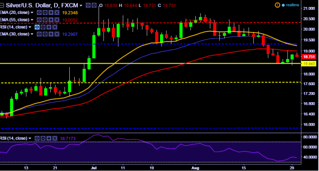 We prefer to go short on XAG/USD around $18.76 with stop loss at $19.05 and target of $18.48/$18.17/$17.69.