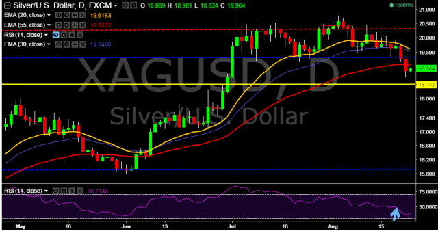 We prefer to go short on XAG/USD around $18.97 with stop loss at $19.27 and target of $18.68/$18.17.