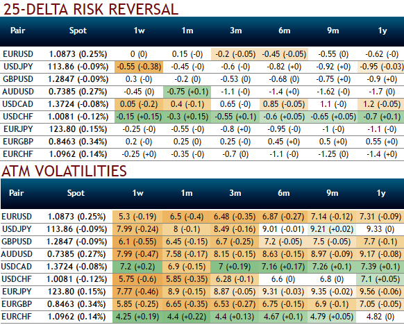 The negative risk reversals are bids for the hedging for the downside risks, as a result, puts are on more demands over calls. The negative risk reversals across all tenors are indicating the bearish hedging interests, which is in tandem with the above mentioned underlying forecasts of downside risks.