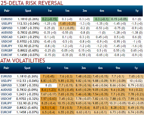 Well, the bearish stance has been substantiated by AUDUSD's rising IV in 1-3m which is an opportunity for put longs in long-term and using shrinking IVs of shorter tenors with bearish neutral delta risk reversal can be interpreted as an opportunity for writing OTM puts or theta shorts in short run on time decay advantage as the spot FX market reckons the price has downside potential for large movement in the days to come which is resulting option holders’ on competitive advantage.