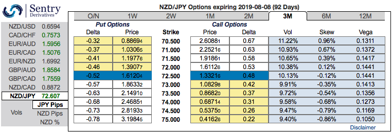 To substantiate above bearish stance, the 3m positively skewed implied volatility indicates the hedging sentiments for the lingering bearish risks. Bids are for OTM puts up to 70.500 levels.