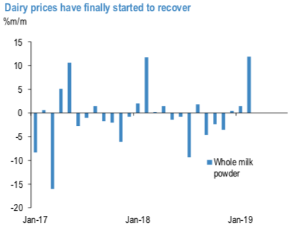 Looking beyond rate differentials, local catalysts for NZD are mixed. This week’s labor market data saw unemployment move back up to 4.3%. However, this comes after 3Q’s stunning drop to a 10-year low, so unemployment is still a touch below where it was six months ago, and probably 1%-pt below NAIRU. Dairy volumes are growing more strongly than they have for some time after prior supply disruptions. Dairy prices have rallied in recent auctions, though posted a similar seasonal pattern last year which was not sustained (refer 1stchart).