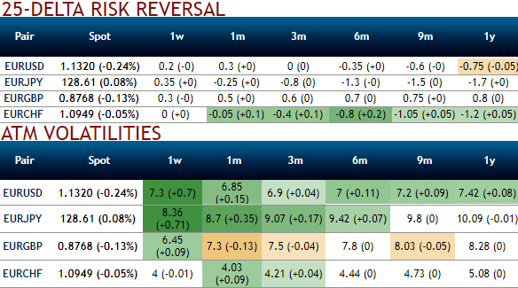 Please be noted that the nutshell showing implied vols and risk reversals of euro crosses indicate gaining hedging traction.