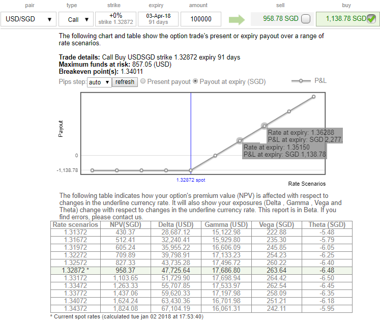 Keeping the both fundamental and technical factors in mind, it is advisable to initiate long in 3M ATM 0.47 delta call while writing 1m (1%) ITM call with positive theta and delta closer to zero (both sides use European style options), this credit call spread option trading strategy is recommended when the underlying spot FX price is anticipated to drop moderately in the near term and spikes up in long term.