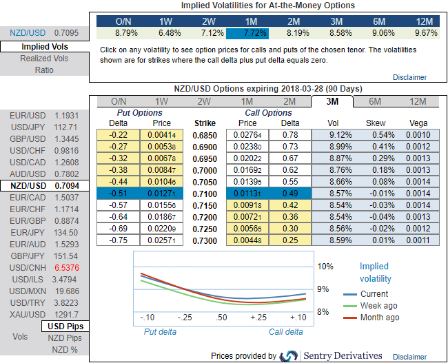 If the RBNZ remains inflexibly on hold, as widely anticipated, and the US dollar rises on the expectation of further Fed interest rate rises in 2018, then NZDUSD should drop to 0.67 over the next few months.