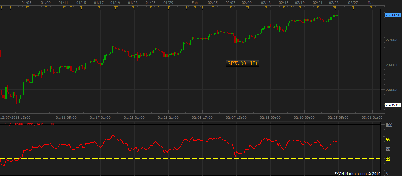 - The S&P500 bulls don’t seem to mind the negatives at the moment, as the focus is on the ongoing trade negotiations between the U.S. and China. The bulls are waiting for President Trump to extend the March 1st tariff deadline, which would signal that talks are progressing in the right direction.