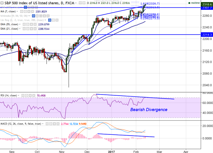 FxWirePro: S&P500 forms 161.8% retracement and Bearish Divergence
