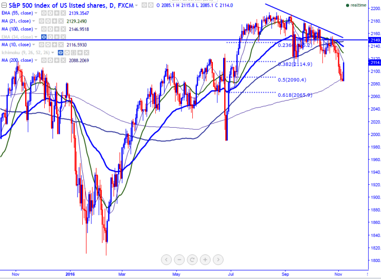 - S&P500 takes support near 200 –day MA and jumped till 2115.80 at the time of writing. It is currently trading around 2113.