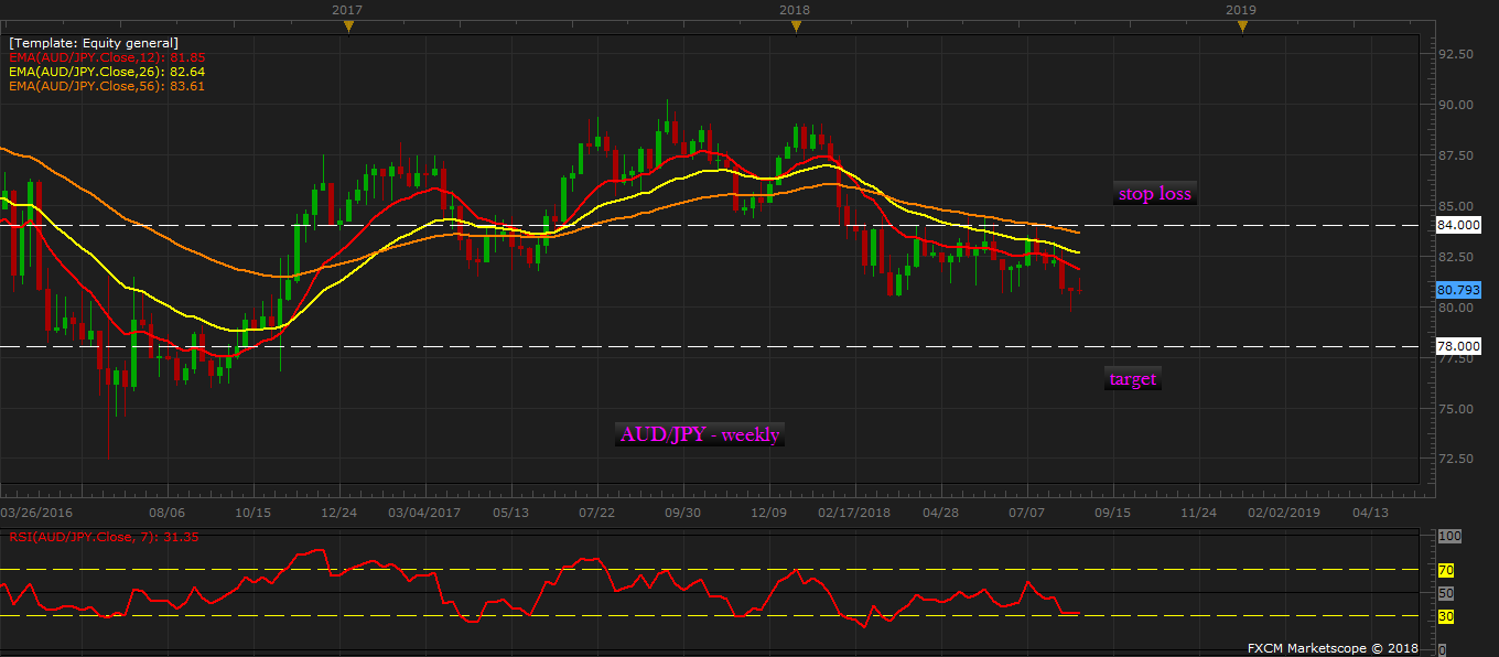 Based on the recent happenings in Australia, where Prime Minister Malcolm Turnbull after narrowly surviving a no-confidence vote is set to face yet another test of his grip on the party, we would like to call on our readers to go short on the Australian dollar against the Japanese yen.