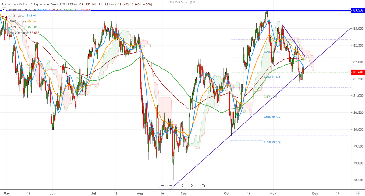 On the flip side, the near term major support is at 81.25, any indicative break below will drag the pair down till 81/80.42/79.80.