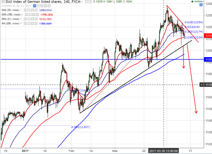 - The index has formed a temporary top around 12387 on Apr 3rd 2017 and declining from that level.