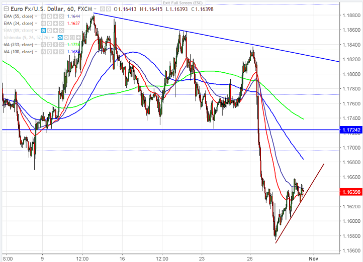 - EUR/USD is trading flat after hitting low of 1.15716. The pair is expected to show a minor change after release of major data for the Euro Zone. The Eurozone GDP and CPI are the major economic data to be released today. The pair jumped till 1.16585 and currently trading around 1.16401.