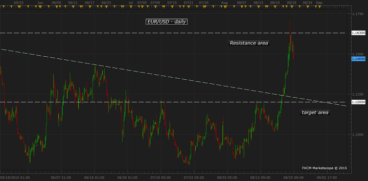 - Euro is currently trading at 1.148 against Dollar. Sell Euro against Dollar targeting 1.12 as initial target, though downfall might extend towards 1.118 area. Resistance lies around 1.163 zone.