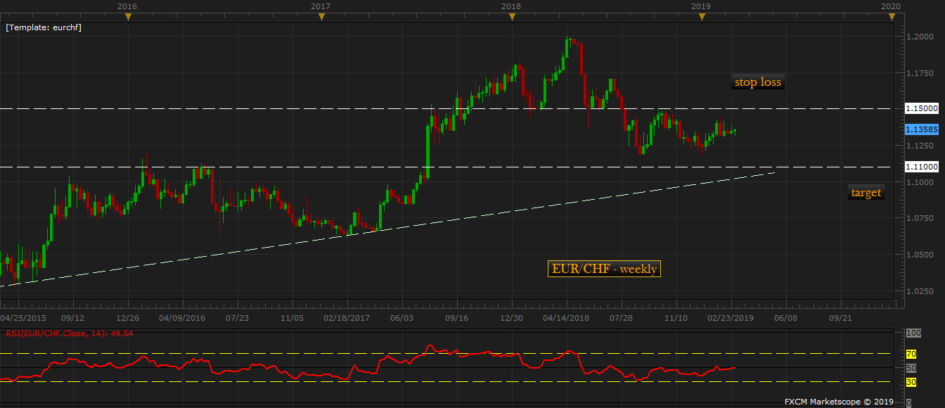 - Sell euro against franc at the current rate of 1.136 and at rallies with the stop loss around 1.15 area, and a target of 1.11 area.