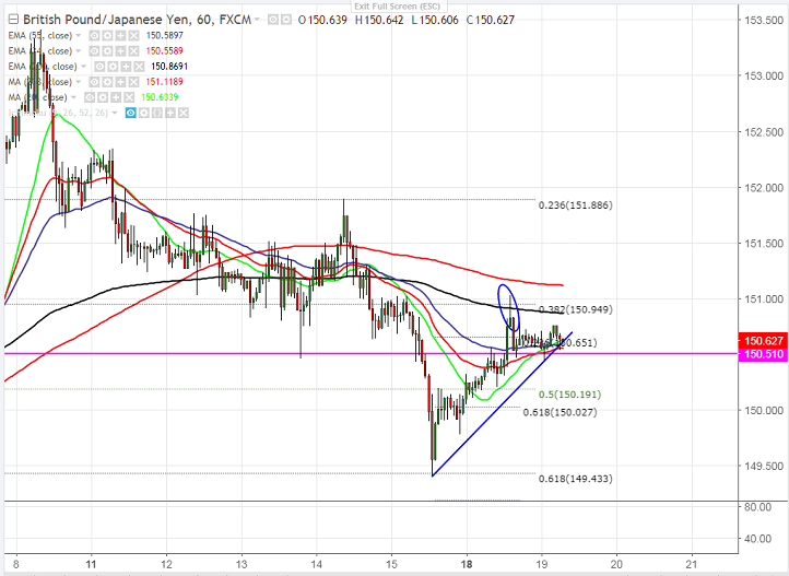 - Technically, the pair made a minor jump above ichimoku cloud and started to fall from that level. The pair should close above 233- H MA at 151.47 for further minor bullishness. Any violation above 151.50 will take the pair to next level till 152.40/153. It should break above 153.40 for short term jump.