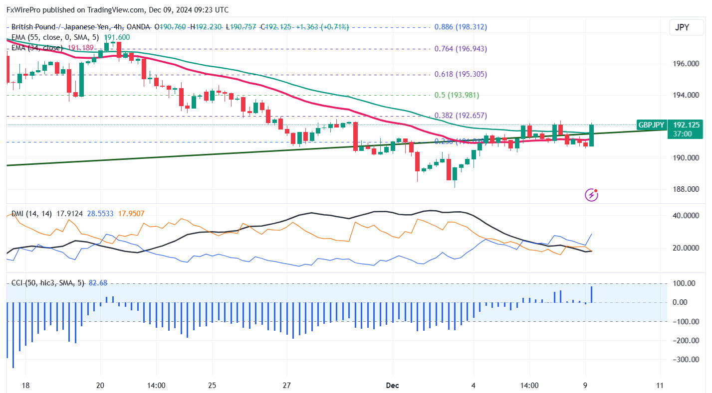 The GBP/JPY currency pair recovered more than 100 pips on weak yen. The pair hit a high of 191.65 at the time of writing and is currently trading at approximately 191.59. Notably, the Potential Reversal Zone (PRZ) is set at 200.20, indicating levels where traders may anticipate a potential price reversal.