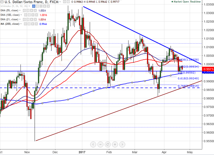 - USD/CHF taken support near 200 –day MA and jumped till 0.99945 yesterday. The pair should break above 1.0024 (55- day EMA) for further bullishness.