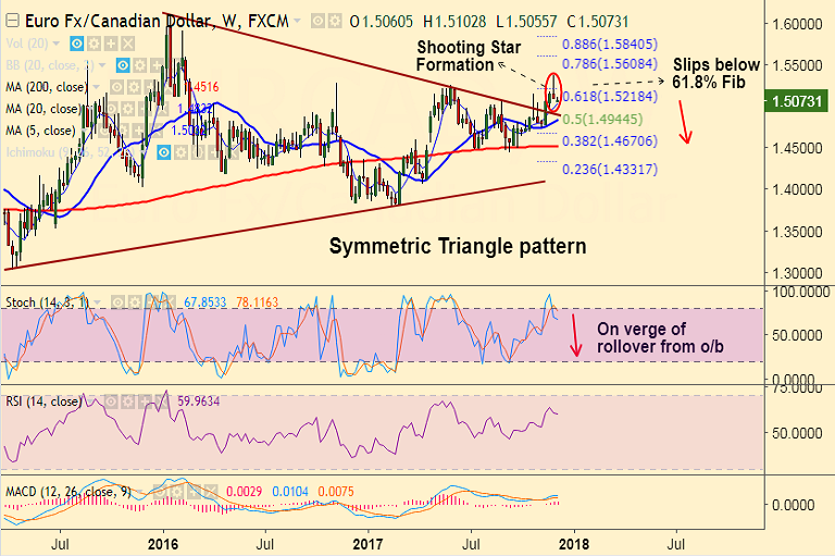 - We evidence a 'Shooting Star' formation on last week candle which raises scope for downside in the pair.