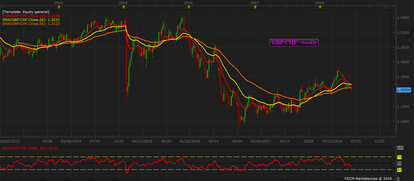 The pound has been declining steadily against the franc, as the economy weakens in the UK and Switzerland continue to experience safe haven flows over political crisis in the European Union. After reaching a peak around 1.386 against the franc in April the pound has declined to 1.305 area as of today. That is an 800 pips move in two months. However, we suspect that the decline is not over and there is a potential to make further profit from short positions. The UK economy has slowed to 1.2 percent y/y in the first quarter.