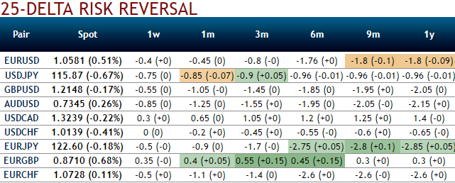 USDJPY 1m risk reversals and 2m IV skews are evidencing mounting hedging interests for downside risks (while articulating).