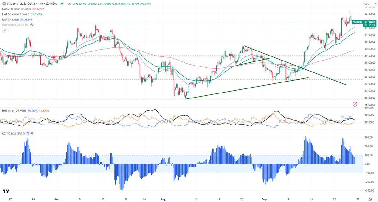 Silver pared some of its gains due to profit booking. It hit a high of $31.58 and is currently trading around $31.79.