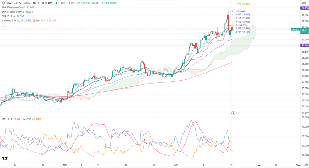 It trades above 21, 55- EMA, and above 200 EMA in the 4-hour chart. The near-term support is around $27.50 and a break below the targets of $27.20/$26.85/$26.25. On the higher side, immediate resistance is around $28.50, and any breach above targets is $29/$29.53/$30.