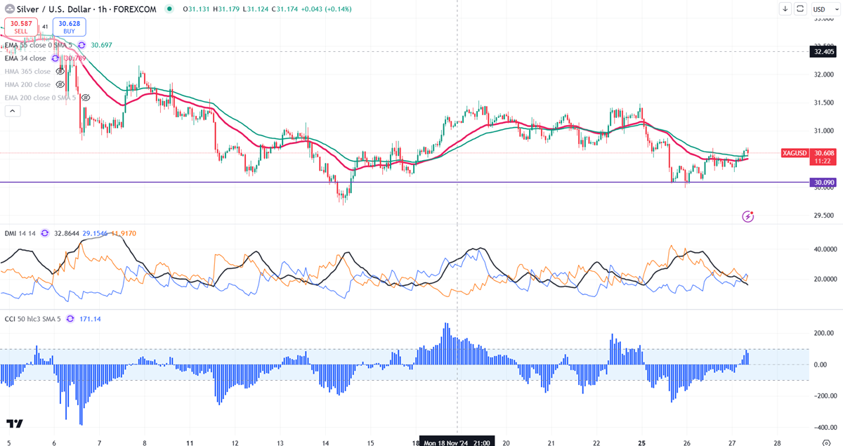 For trading, the major level to monitor is $30. Silver is below key moving averages, with near-term support at $30. If it falls below this, it could target $29.60/$28.47. On the upside, immediate resistance is at $30.80; breaking this could lead to targets of $31.25/$31.75,$32.20, $32.75, $33, $33.60, $34, $34.50, and even $34.73.