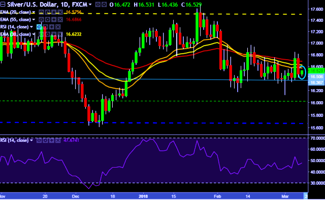 We prefer to take long position in XAG/USD around $16.50, stop loss $16.40 and target of $16.82/$16.96.