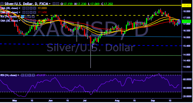 We prefer to take long position in XAG/USD around $17.17, stop loss $17.01 and target of $17.60.