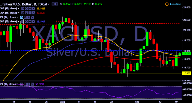 We prefer to go short on XAG/USD around $19.24 with stop loss at $19.35 and target of $18.77/$18.44.
