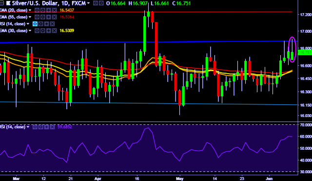 We prefer to take short position on XAG/USD only below $16.72, stop loss $16.90 and target of $16.42.