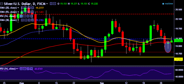 We prefer to go long on XAG/USD around $19.15 - $19.18 with stop loss at $19.01 and target of $19.32/$19.52.