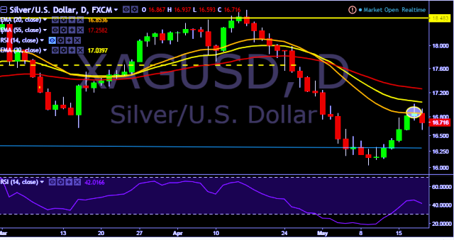 We prefer to go short on XAG/USD around $16.78 with stop loss at $17.01 and target of $16.58/$16.48/16.28.