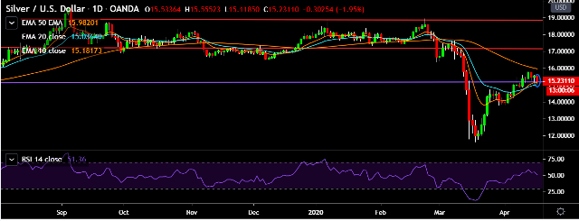 - Intraday bias remains bearish till the time pair holds key resistance at $15.55 mark.